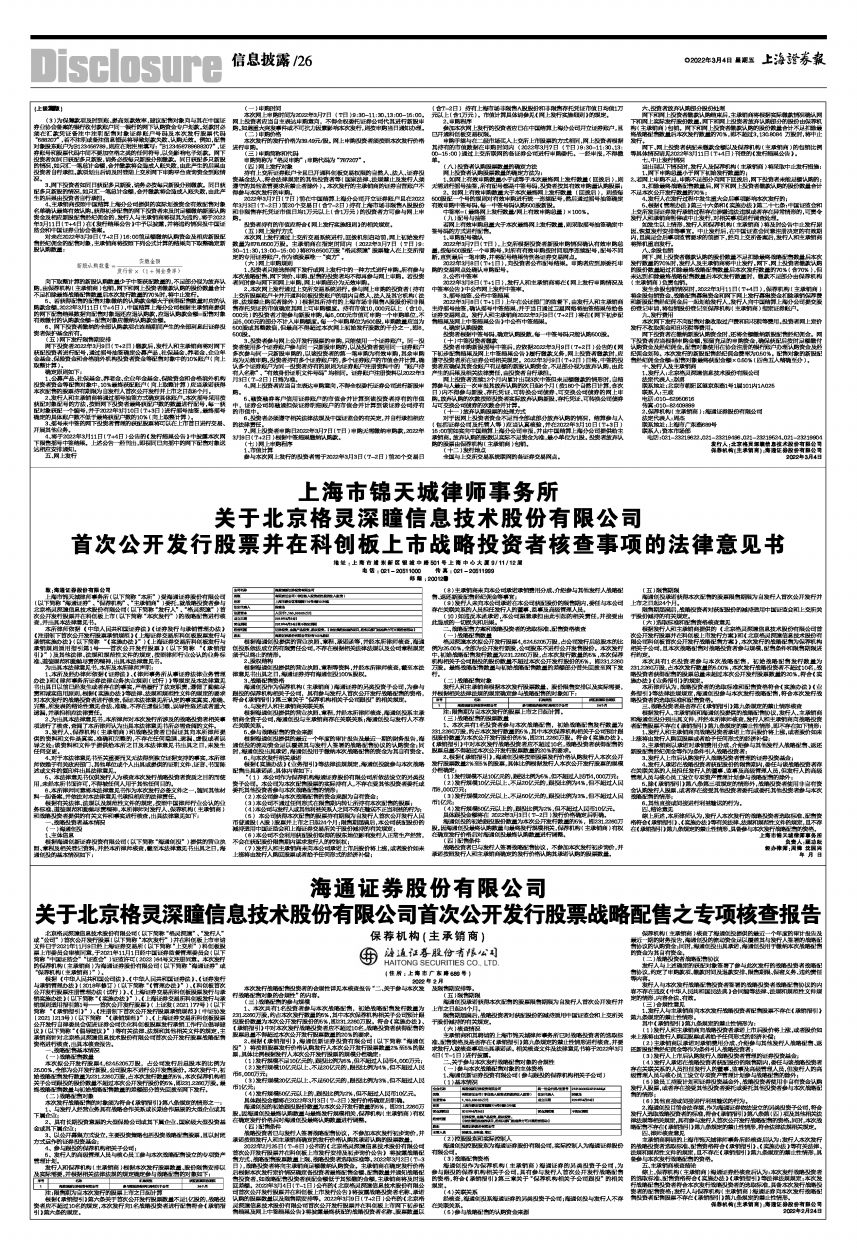 根据《中华人民共和国公司法》、《中华人民共和国证券法》、《证券发行与承销管理办法》(2018年修订)(以下简称“《管理办法》”)、《科创板首次公开发行股票注册管理办法(试行)》、《上海证券交易所科创板股票发行与承销实施办法》(以下简称“《实施办法》”)、《上海证券交易所科创板发行与承销规则适用指引第1号——首次公开发行股票》(上证发〔2021〕77号)(以下简称“《承销指引》”)、《注册制下首次公开发行股票承销规范》(中证协发〔2021〕213号)(以下简称“《承销规范》”)、《上海证券交易所科创板股票公开发行自律委员会促进证券公司优化科创板股票发行承销工作行业倡导建议》(以下简称“《倡导建议》”)等有关法律、法规和其他相关文件的规定,主承销商针对北京格灵深瞳信息技术股份有限公司首次公开发行股票战略配售资格进行核查,出具本核查报告。