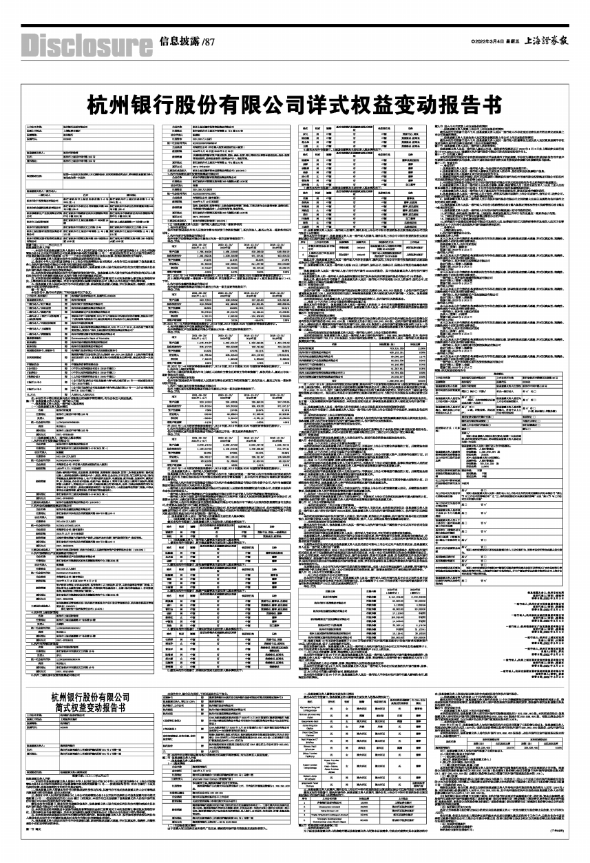 三、依据《中华人民共和国证券法》《上市公司收购管理办法》《公开发行证券的公司信息披露内容与格式准则第15号一一权益变动报告书(2020修订)》的规定,本报告书已全面披露了信息披露义务人在杭州银行股份有限公司中拥有权益的股份变动情况。