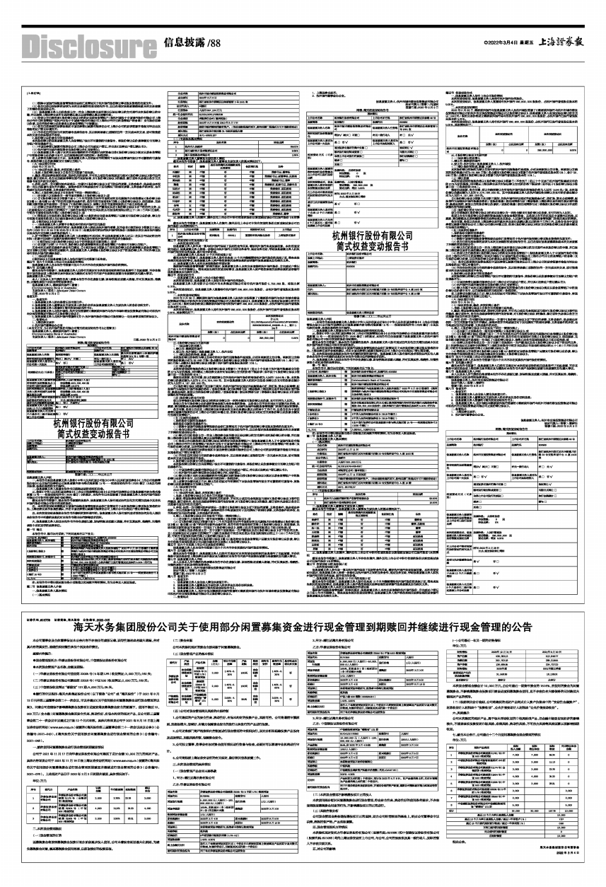 三、依据《中华人民共和国证券法》《上市公司收购管理办法》《公开发行证券的公司信息披露内容与格式准则第15号一一权益变动报告书(2020修订)》的规定,本报告书已全面披露了信息披露义务人在杭州银行股份有限公司中拥有权益的股份变动情况。