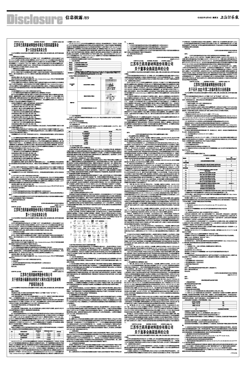 江苏华兰药用新材料股份有限公司(以下简称“公司”或“华兰股份”)定于2022