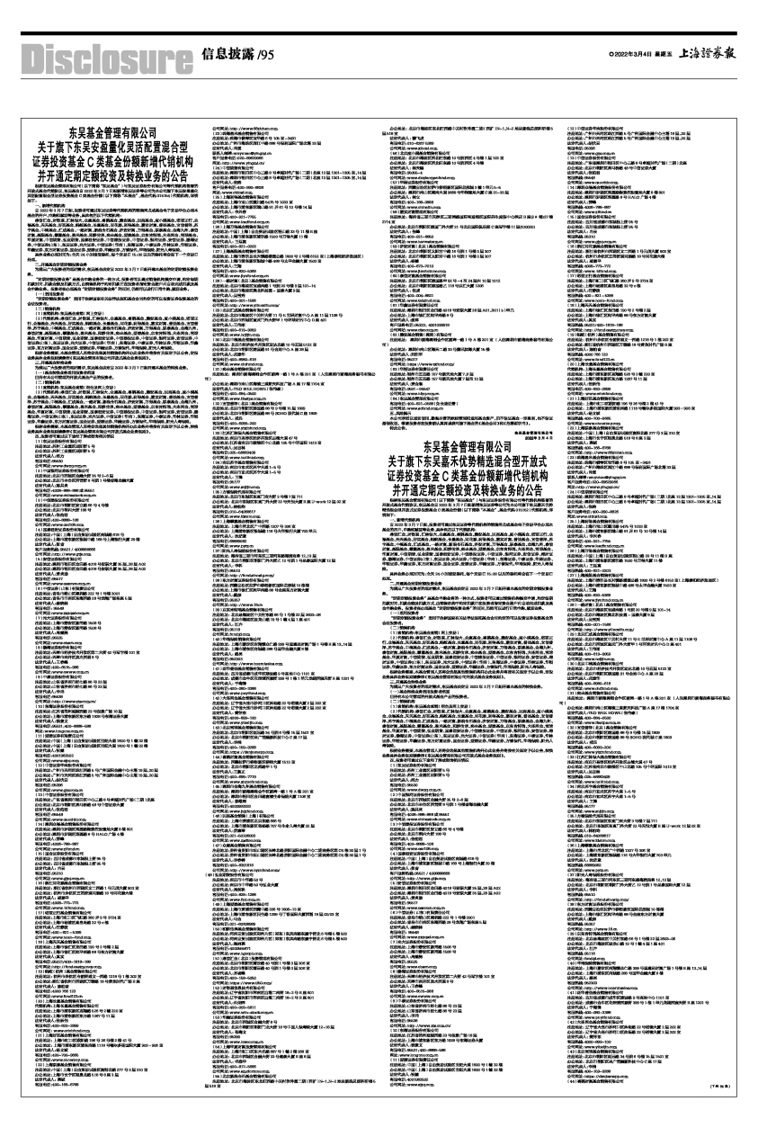 根据东吴基金管理有限公司(以下简称“东吴基金”)与东吴证券股份有限公司等代销机构签署的开放式基金代销协议,东吴基金自2022年3月7日起新增东吴证券等公司为本公司旗下东吴嘉禾优势精选混合型开放式证券投资基金C类基金份额(以下简称“本基金”,基金代码015152)代销机构,详情如下: