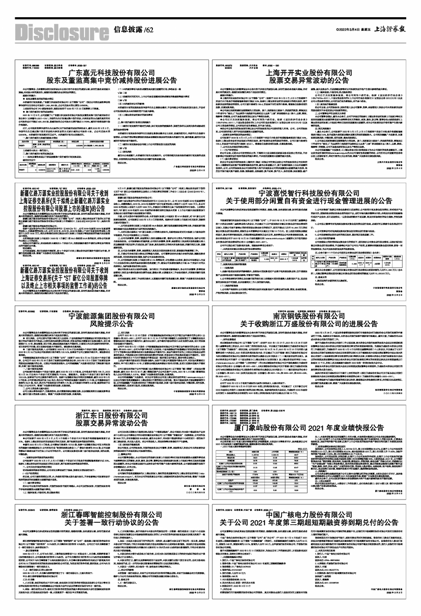 宁波能源集团股份有限公司(以下简称“公司”)股票于2022年2月24日以来六个交易日涨停,公司已于2022年2月26日发布了股票交易异常波动公告、2022年3月3日发布了股票交易异常波动及风险提示的公告。近期公司股票波动较大,公司郑重提醒广大投资者应充分了解股票市场风险,注意二级市场交易风险。
