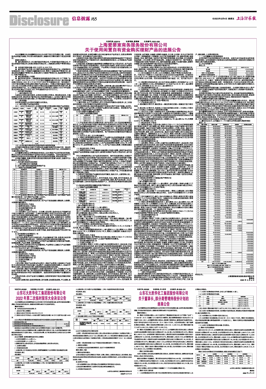 证券代码:603026 证券简称:石大胜华 公告编号:临2022-016