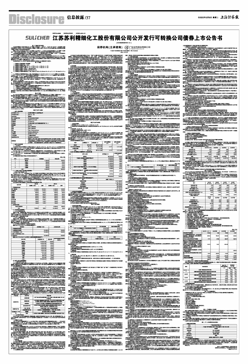 本公司提醒广大投资者注意,凡本上市公告书未涉及的有关内容,请投资者查阅2022年2月14日刊载于《上海证券报》的《江苏苏利精细化工股份有限公司公开发行可转换公司债券募集说明书摘要》及刊载于上海证券交易所网站(http://www.sse.com.cn)的《江苏苏利精细化工股份有限公司公开发行可转换公司债券募集说明书》(以下简称“《募集说明书》”)全文。
