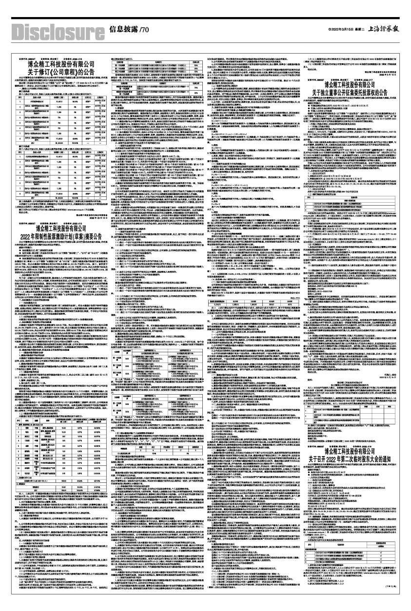本次股东大会召开的具体情况,详见公司于2022年3月15日在上海证券交易所网站(www.sse.com.cn)及《上海证券报》、《中国证券报》、《证券时报》、《证券日报》披露的《博众精工科技股份有限公司关于召开2022年第二次临时股东大会的通知》。