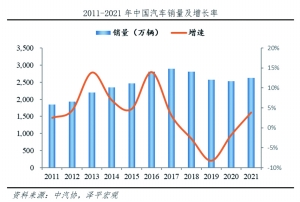 新能源汽车渗透率将会保持高增速,新能源汽车市场或将迎来黄金十五年。从全球来看,预计到2025年,全球新能源汽车销量将达到1800万辆;到2030年,全球电动汽车销量预计在3000万辆规模以上。从国内来看,到2035年,我国新能源汽车销量粗略估计有6至8倍的成长空间。按照中国汽车工程学会牵头修订编制的《节能与新能源汽车技术路线图2.0》,我国新能源汽车总体渗透率规划为2025年为20%、2030年为40%、2035年为50%。在2021年12月单月,国内新能源汽车渗透率达到19.1%、全年市场渗透率为13.4%,因此到2035年,新能源汽车在渗透率方面有近4倍的成长空间。再来看整体中国汽车市场,2017年我国全年汽车销量达到峰值的2888万辆,然后进入了短期调整,2018年、2019年和2020年汽车销量均出现同比下滑。2021年,中国汽车销售量又重新转为正增长,为2628万辆,增幅为3.8%,结束了调整期。如果按照每年3%至5%的增速预测,到2035年,中国汽车年销量有望达到目前的1.5至2倍,约为4500万辆,再叠加4倍的渗透率成长空间,预计到2035年时,新能源汽车销量仍有6至8倍的成长空间,发展前景非常广阔。
