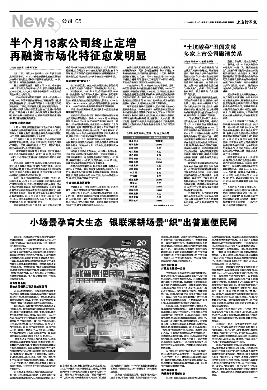据上证报资讯统计,截至3月17日,今年已有36家上市公司发布定增终止公告,涉及拟募资金额超过465亿元。其中,仅3月前半个月就有18家上市公司宣布终止定增计划。
