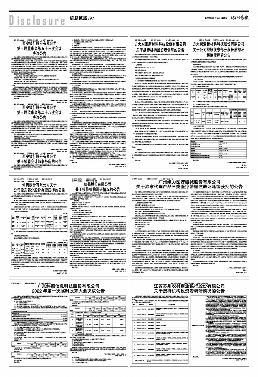 本行于2022年1月1日至2022年3月16日,通过现场及电话会议等交流形式共接待投资者调研11场次,现将主要情况公告如下: