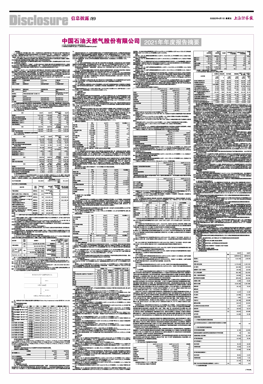 1.1 本业绩公告(年报摘要)摘自二零二一年度报告全文,投资者欲全面了解中国石油天然气股份有限公司(“本公司”)的经营成果、财务状况及未来发展规划,应仔细阅读本公司二零二一年度报告全文。年度报告全文同时刊载于上海证券交易所网站(网址http://www.sse.com.cn)、香港联合交易所有限公司(“香港联交所”)“披露易”网站(网址http://www.hkexnews.hk)及本公司网站(网址http://www.petrochina.com.cn)。