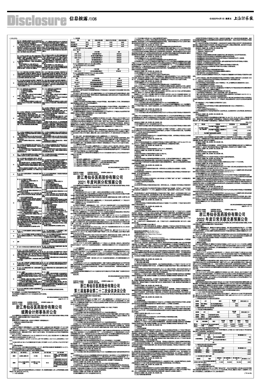 证券代码:603896 证券简称:寿仙谷 公告编号:2022-015