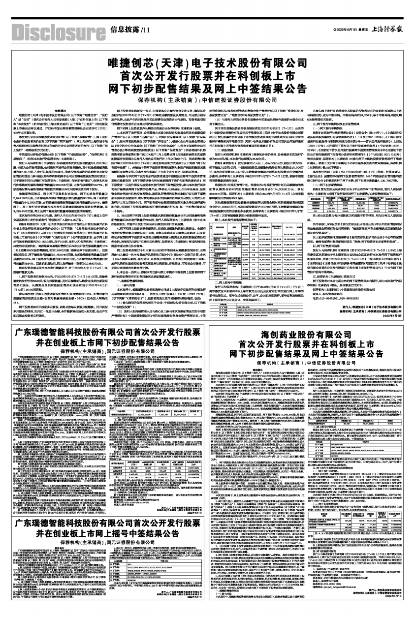 根据《广东瑞德智能科技股份有限公司首次公开发行股票并在创业板上市发行公告》,发行人与保荐机构(主承销商)于2022年3月31日(T+1日)上午在深圳市福田区红荔西路上步工业区203栋202室主持了瑞德智能首次公开发行股票摇号中签仪式。摇号中签仪式按照公开、公平、公正的原则在深圳市罗湖公证处代表的监督下进行并公证。现将中签结果公告如下: