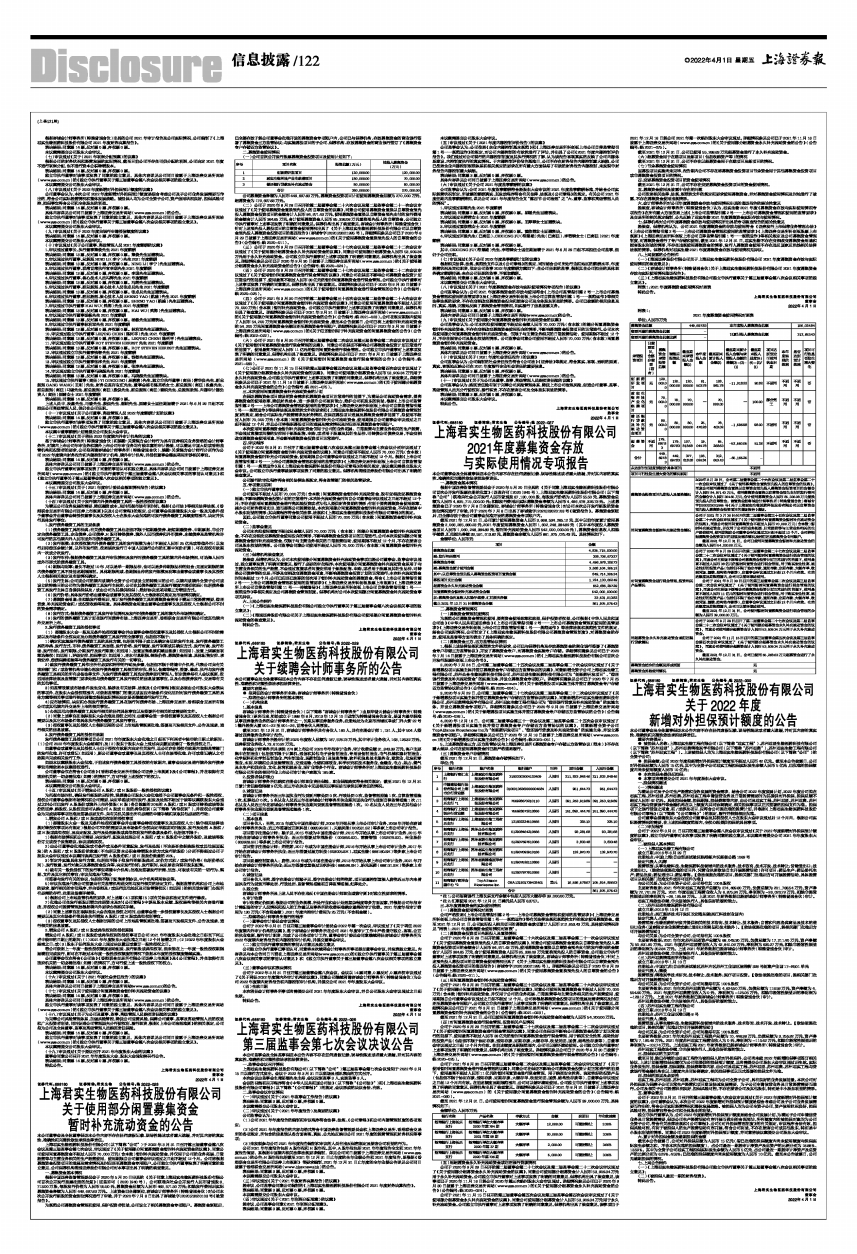 证券代码:688180 证券简称:君实生物 公告编号:临2022-030