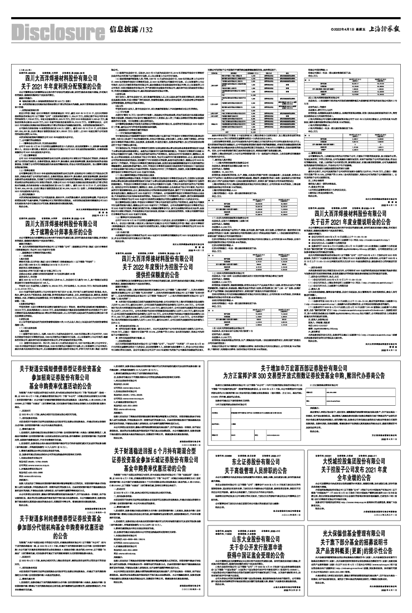 四川大西洋焊接材料股份有限公司(以下简称“公司”)已于2022年4月1日发布公司2021年年度报告,为便于广大投资者更全面深入地了解公司2021年度经营成果、财务状况,公司拟于2022年4月13日上午 11:00-12:00以网络互动的方式召开2021年度业绩说明会,就投资者关心的问题进行交流。