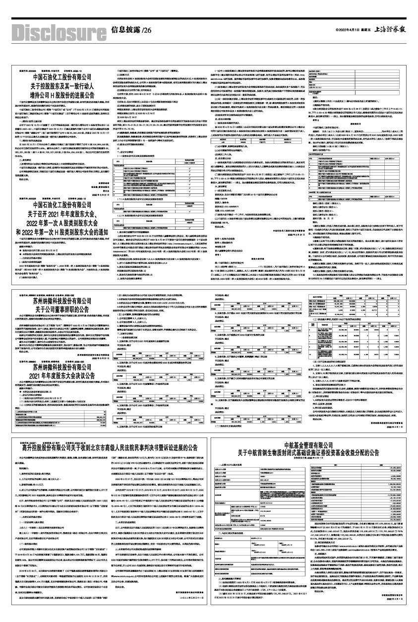 中国石油化工股份有限公司(简称“中国石化”或“公司”)于2022年3月31日接到公司控股股东中国石油化工集团有限公司(简称“中国石化集团”)关于增持公司H股股份进展的通知,现将有关情况公告如下: