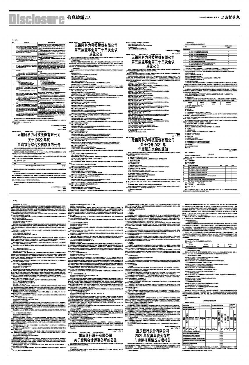 内容详见同日于《上海证券报》、上海证券交易所网站(www.sse.com.cn)刊登的《无锡阿科力科技股份有限公司2021年年度报告》、《无锡阿科力科技股份有限公司2021年年度报告摘要》。
