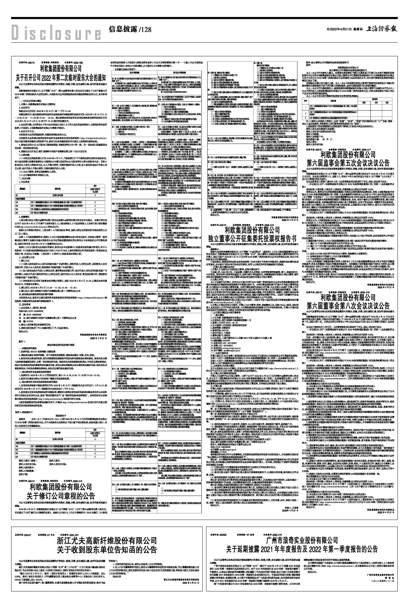利欧集团股份有限公司(以下简称“公司”)第六届董事会第八次会议于2022年4月15日以电子邮件的形式发出通知,并通过电话进行确认,于2022年4月20日以通讯表决方式召开。会议应出席董事7名,实际出席7名。本次会议的召开符合《中华人民共和国公司法》及《公司章程》的规定,合法有效。