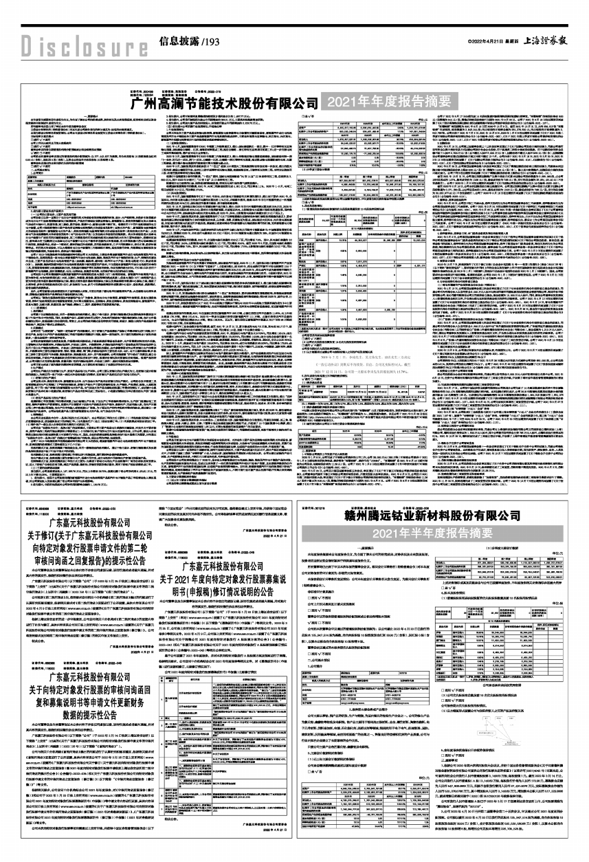 赣州腾远钴业新材料股份有限公司2021年年度报告摘要