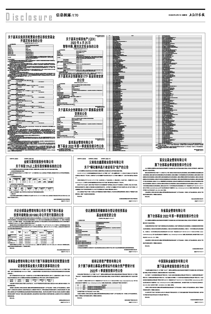 旗下全部基金2022年第一季度报告提示性公告 -