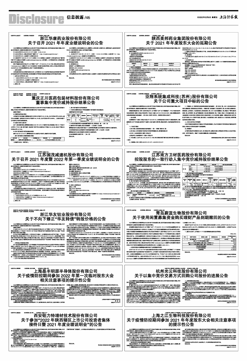 由于上海市目前处在新冠肺炎疫情防控的特殊时期,根据政府部门出台的疫情防控政策要求,对本次股东大会召开地点所在区域实行封闭管理。为严格落实疫情防控相关要求,积极配合全市疫情防控工作,同时保护股东、股东代理人和其他参会人员的健康,依法保障股东合法权益,公司对疫情防控期间参加本次股东大会的相关注意事项做出如下特别提示: