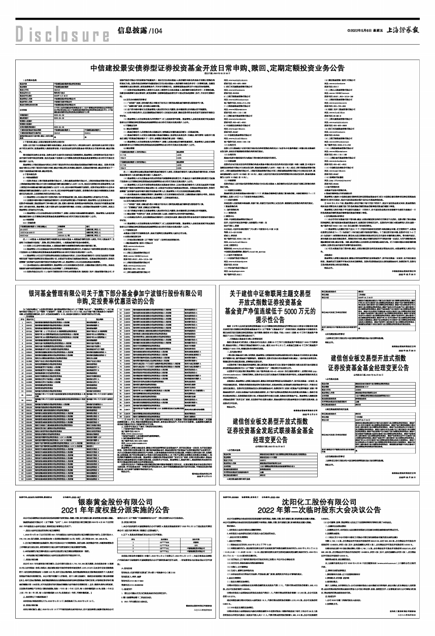 中信建投景安债券型证券投资基金开放日常申购、赎回、定期定额投资业务公告