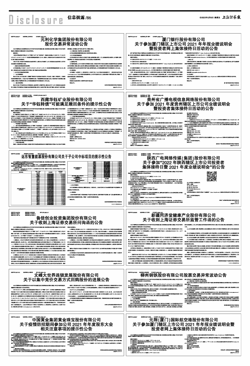 关于参加厦门辖区上市公司2021年年报业绩说明会
