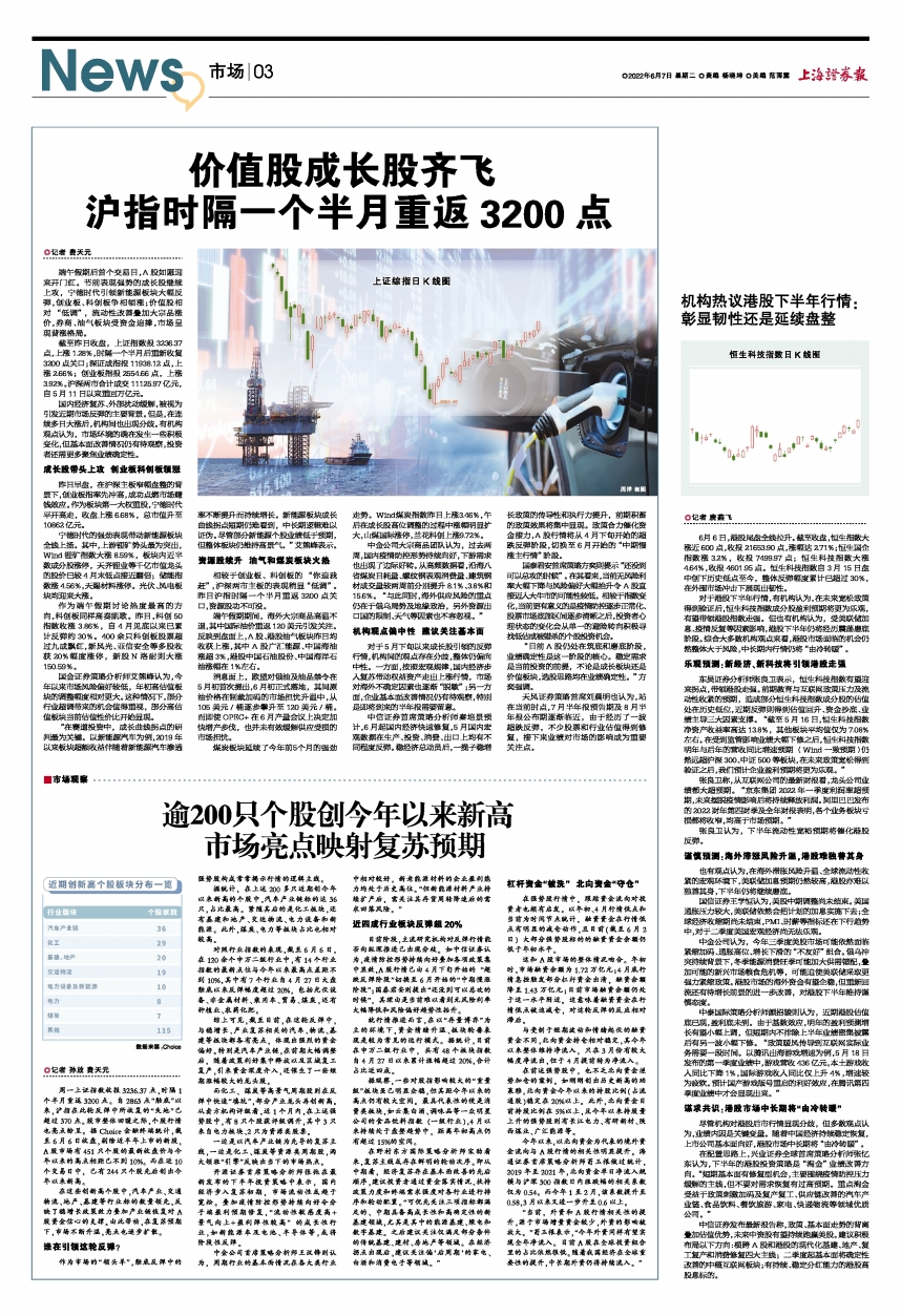 价值股成长股齐飞 沪指时隔一个半月重返3200点