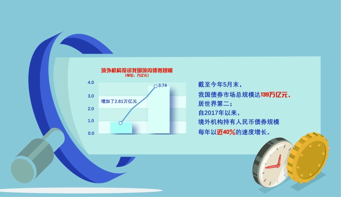——规模稳步增长、境外资金“活水”不断流入。截至2022年5月末,我国债券市场总规模达139万亿元人民币,较2012年末增长了4.3倍,居世界第二;自2017年以来,境外机构持有人民币债券规模每年以近40%的速度增长。
