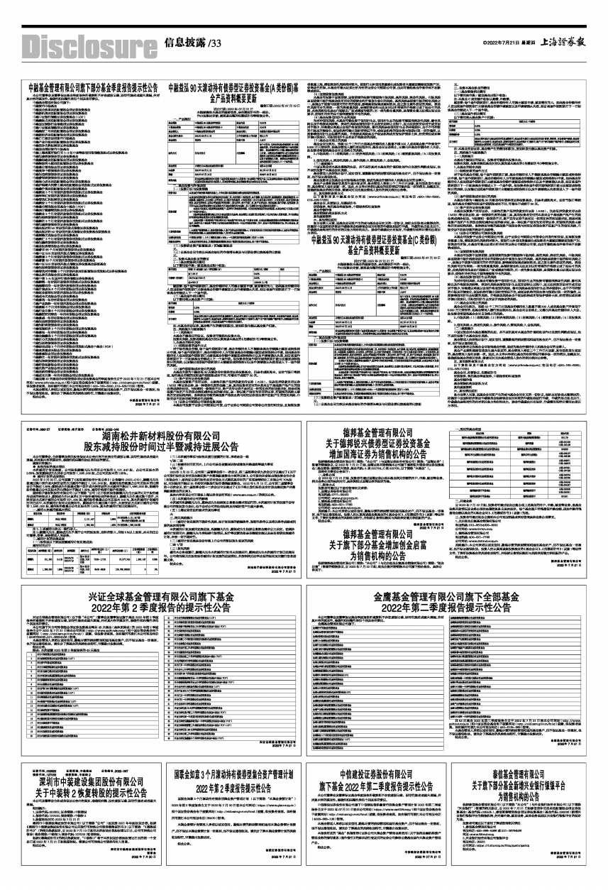 旗下基金2022年第二季度报告提示性公告 -