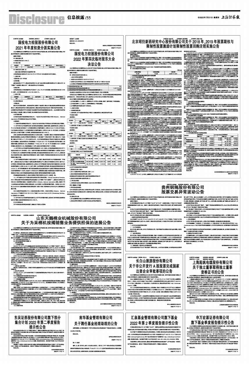 汇泉基金管理有限公司旗下基金2022年第2季度报告提示性公告