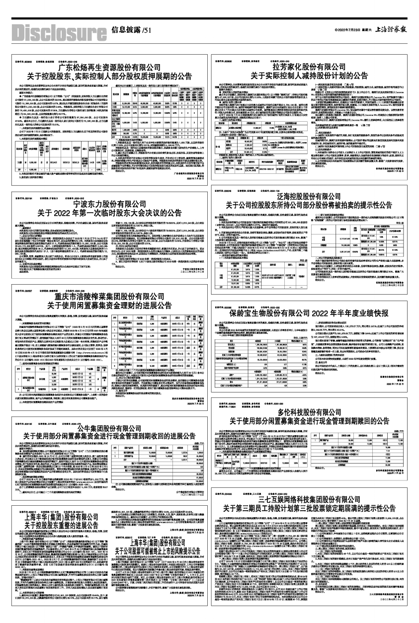 保龄宝生物股份有限公司2022年半年度业绩快报