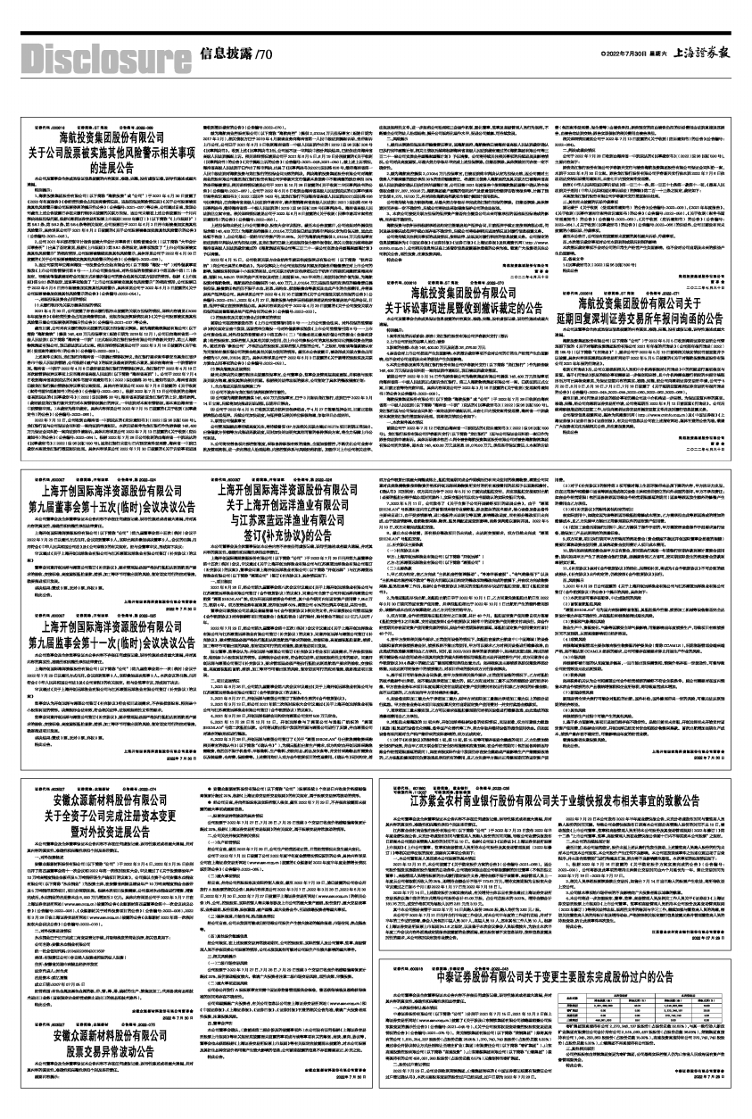 证券代码:000616 证券简称:ST海投 公告编号:2022-070