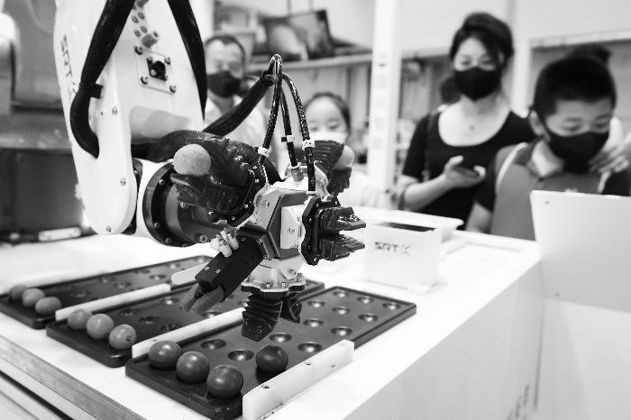 “我们研发了低成本替代人手去工作的技术方案,解决了工业自动化生产‘最后一厘米’的难题。”SRT软体机器人公司负责人介绍,柔性末端执行器是一类新型末端夹具,能够温柔无损地抓取工件,具有极高的自适应性。