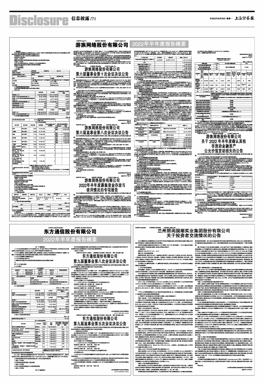 具体内容详见同日在上海证券交易所网站(www.sse.com.cn)披露的《东方通信股份有限公司2022年半年度报告》、《东方通信股份有限公司2022年半年度报告摘要》