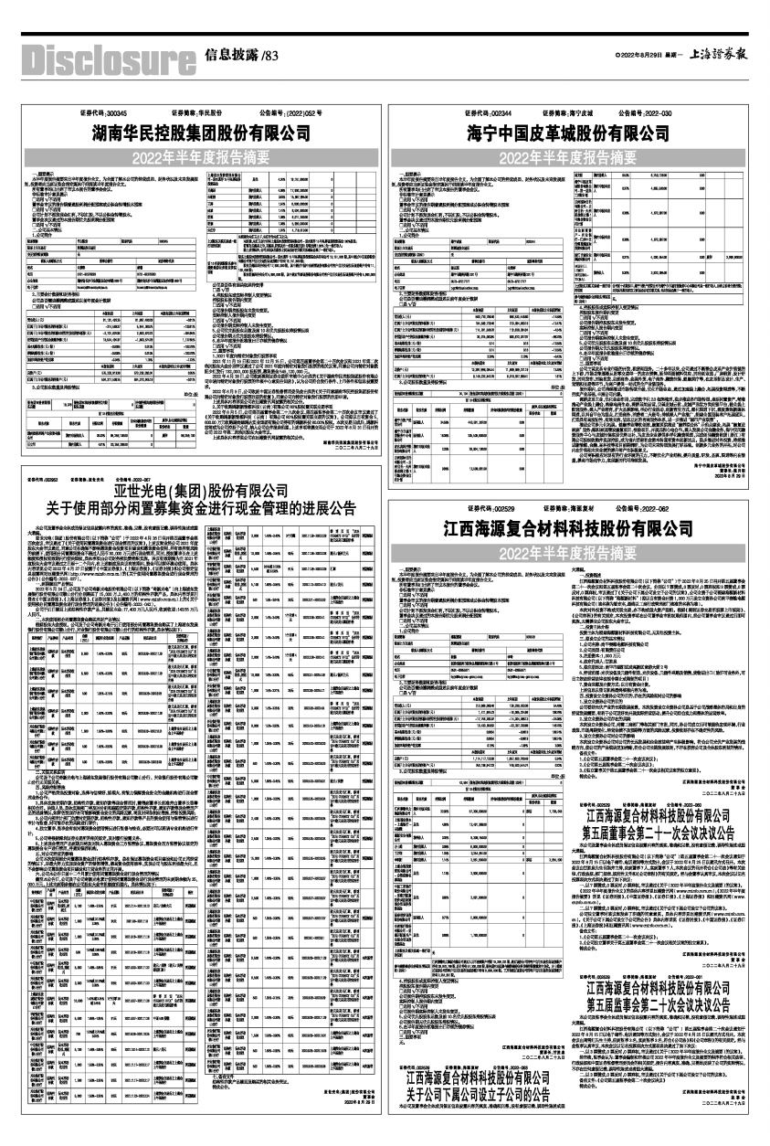 证券代码:300345 证券简称:华民股份 公告编号:(2022)052号