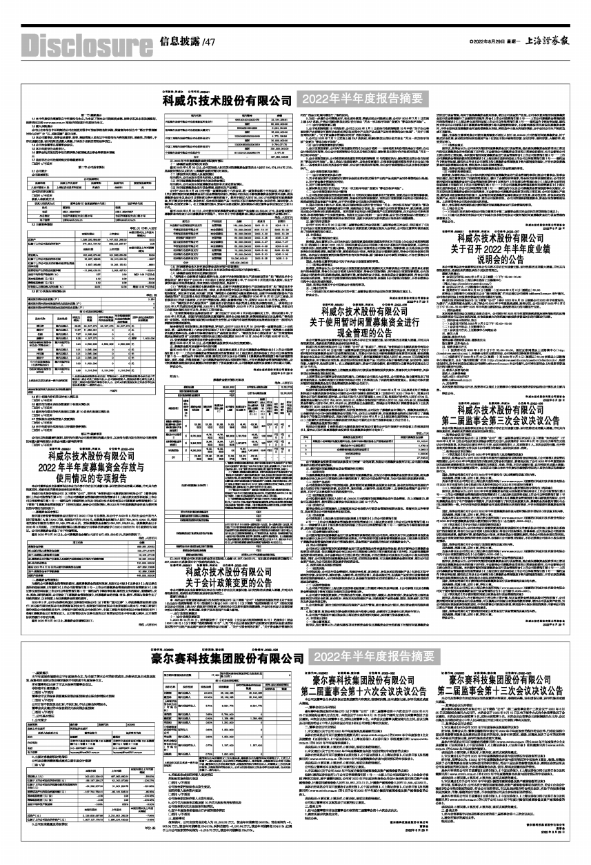 具体内容详见公司同日披露在《证券时报》、《中国证券报》、《上海证券报》、《证券日报》及巨潮资讯网(www.cninfo.com.cn)的《2022年半年度募集资金存放与使用情况的专项报告》。