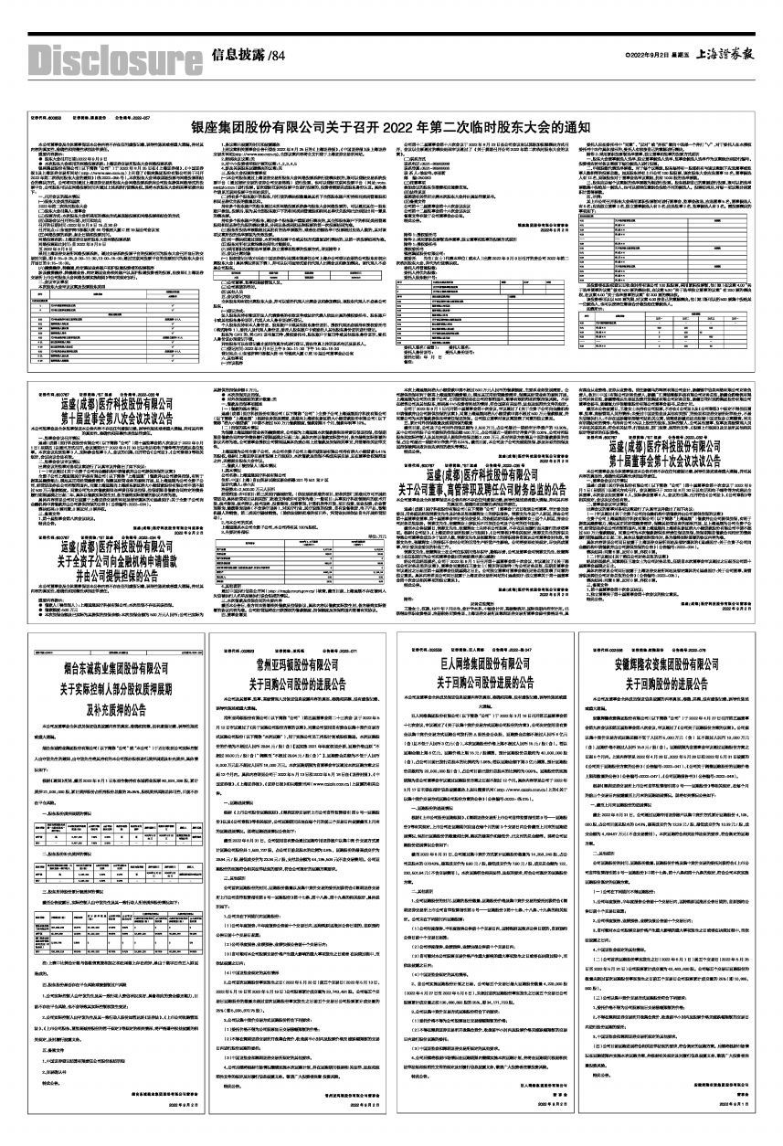 运盛(成都)医疗科技股份有限公司(以下简称“公司”)第十届监事会第八次会议于2022年9月1日(星期四)以通讯方式召开。会议通知已于2022年8月30日以电话和电子邮件等方式送达各位监事。本次会议应到监事3人,实际参会监事3人,会议的召集、召开符合《公司法》、《公司章程》等相关规定,会议决议合法有效。