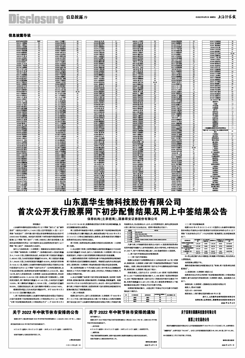 深圳市豪鹏科技股份有限公司人民币普通股股票将于2022年9月5日在本所上市。证券简称为“豪鹏科技”,证券代码为“001283”。公司人民币普通股股份总数为80,000,000股,其中20,000,000股股票自上市之日起开始上市交易。