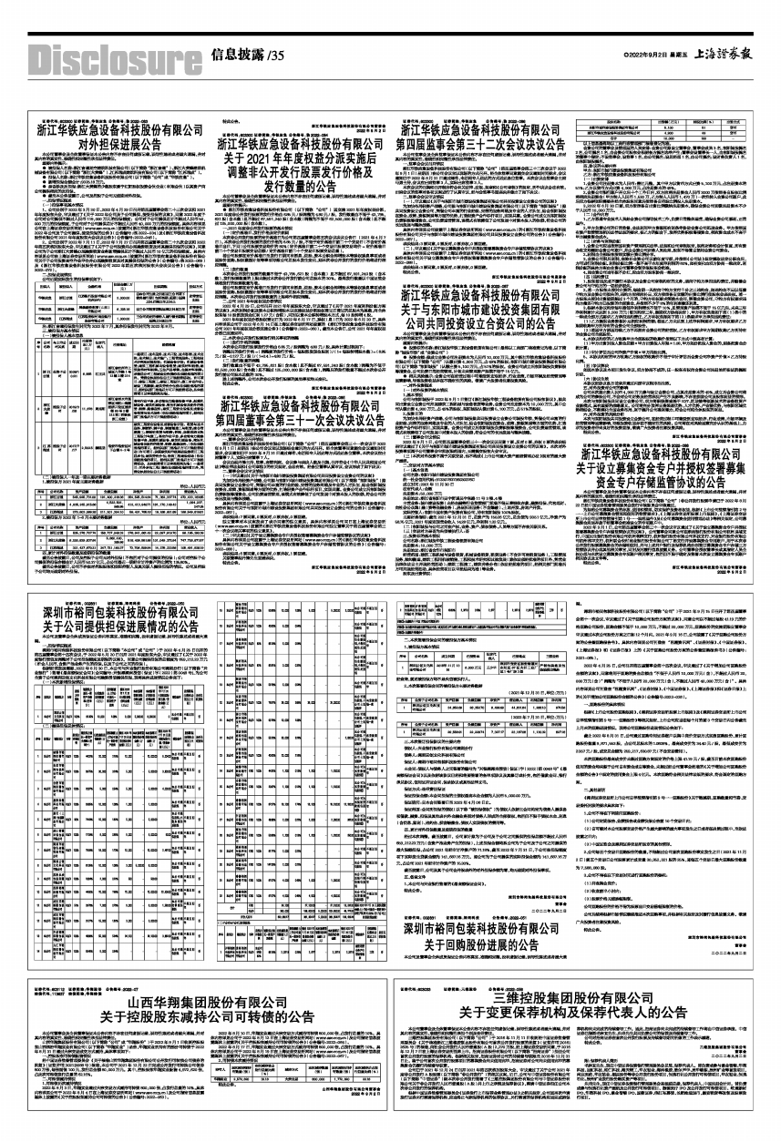 2022年8月3日,华翔实业通过大宗交易方式减持可转债800,000张,占发行总量的10%。具体内容详见公司于2022年8月4日在上海证券交易所网站(www.sse.com.cn)及公司指定信息披露媒体上披露的《关于控股股东减持公司可转债的公告》(公告编号:2022-063)。