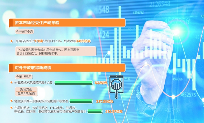 数据显示,今年前7个月,沪深交易所共178家企业IPO上市,合计融资3459亿元,IPO数量和融资金额均居全球首位。两市再融资合计3825亿元,保持较高水平。