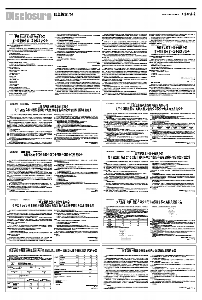 上能电气股份有限公司(以下简称“公司”)于2022年8月19日召开第三届董事会第九次会议和第三届监事会第九次会议,审议通过了《关于〈上能电气股份有限公司2022年限制性股票激励计划(草案)〉及其摘要的议案》等议案,具体内容详见公司于2022年8月22日在巨潮资讯网上披露的公告。