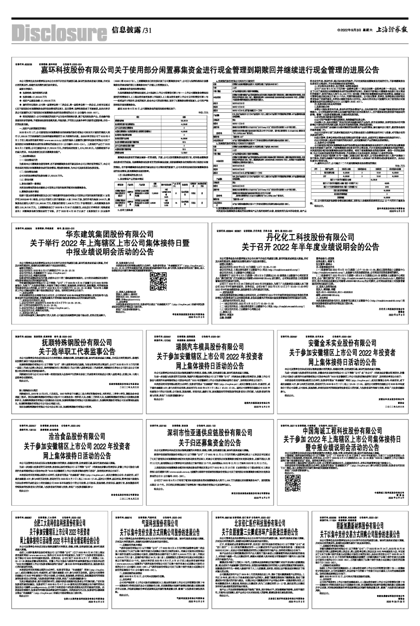 网上集体接待日活动暨2022年半年度业绩说明会的公告
