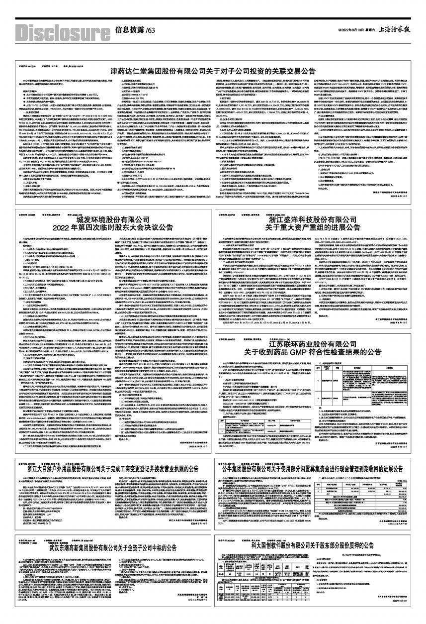 津药达仁堂集团股份有限公司(以下简称“公司”或“本公司”)于2022年8月22日召开2022年第五次董事会,审议通过了“公司收购天津中新科炬生物制药股份有限公司部分股权的议案”。2022年8月22日,公司与汪良明、陈喆两位交易对方签署《股份转让协议》,分别受让汪良明持有的天津中新科炬生物制药股份有限公司(以下简称“科炬生物”)3,075,000股股权、陈喆持有的科炬生物2,660,899股股权。本次收购完成后,公司持有科炬生物12,728,899股股权,占总股本的47.85%。公司于2022年8月23日进行了信息披露,详见临时公告2022-29号、2022-30号。2022年9月5日,公司已收到全国中小企业股份转让系统有限责任公司《关于科炬生物特定事项协议转让申请的确认函》(股转函[2022]2972号)。股份过户登记手续完成后,公司将成为科炬生物的控股股东。