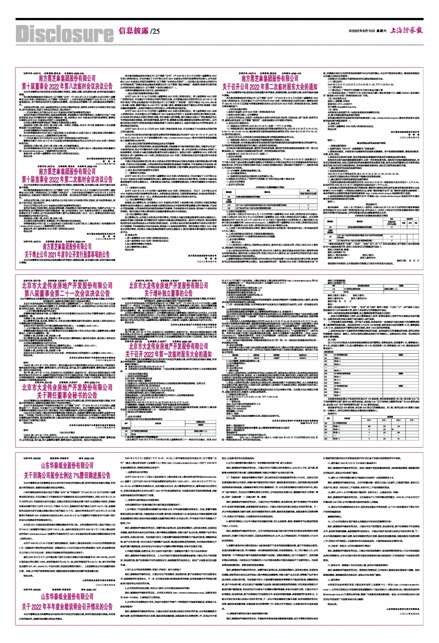 证券代码:600308 股票简称:华泰股份 编号:2022-039