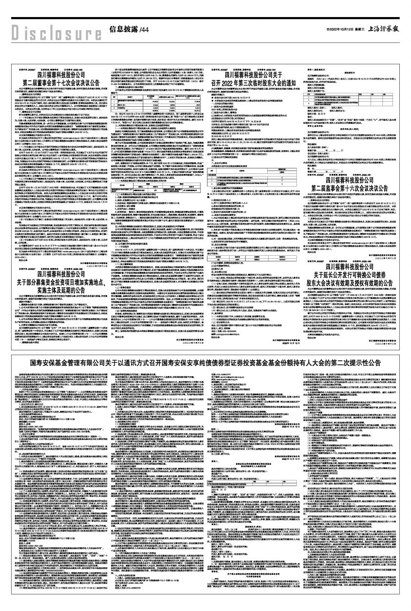 公司董事会定于2022年10月27日下午14时在四川省成都市崇州市崇双大道二段518号公司会议室以现场会议及网络投票相结合的方式召开2022年第三次临时股东大会。