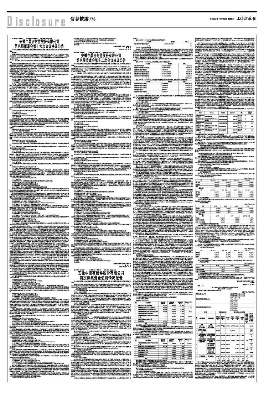 根据中国证监会《业务监管规定》、《关于前次募集资金使用情况报告的规定》(证监发行字[2007]500号)等法律、法规和规范性文件的要求,公司编制了截至2022年9月30日止的《安徽中鼎密封件股份有限公司前次募集资金使用情况专项报告》。