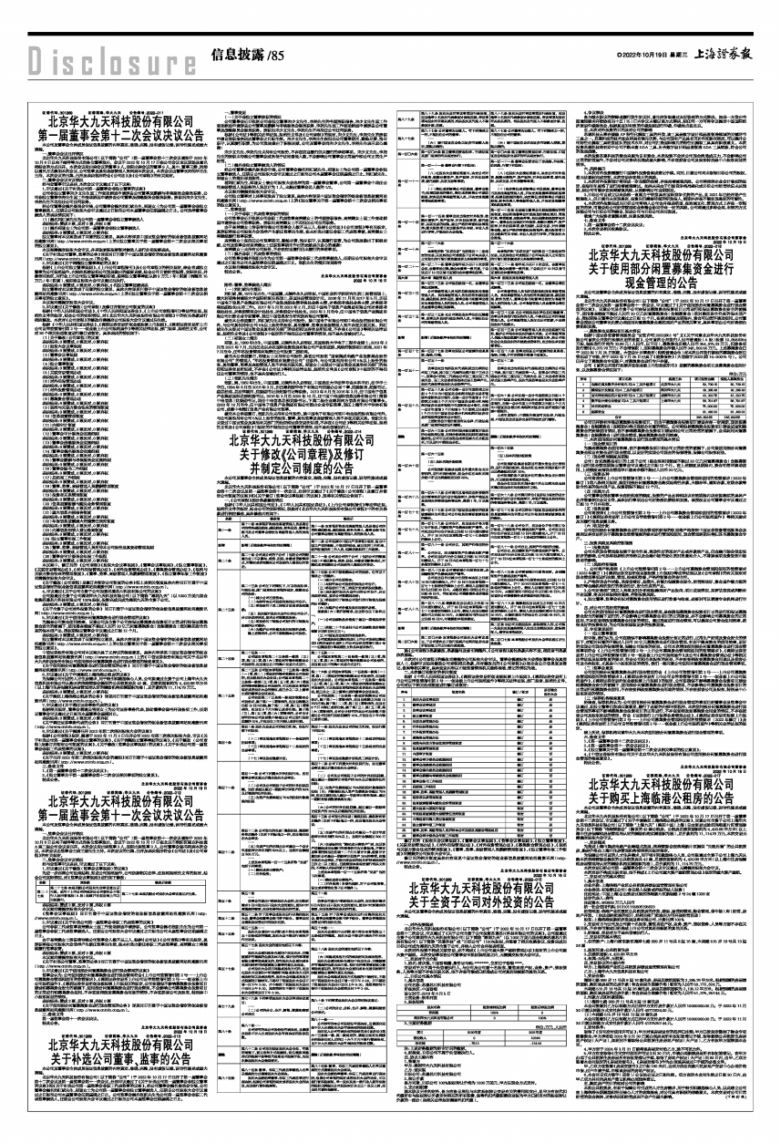 北京华大九天科技股份有限公司(以下简称“公司”)第一届监事会第十一次会议通知于2022年10月6日以电子邮件等方式向各位监事发出,会议于2022年10月17日在北京市朝阳区望京科技园A座二层公司会议室召开。本次会议应出席监事3人,实际出席监事3人,公司董事会秘书列席本次会议。本次会议由监事会主席王博先生主持。本次会议的召集、召开及表决程序符合《公司法》及《公司章程》的有关规定。