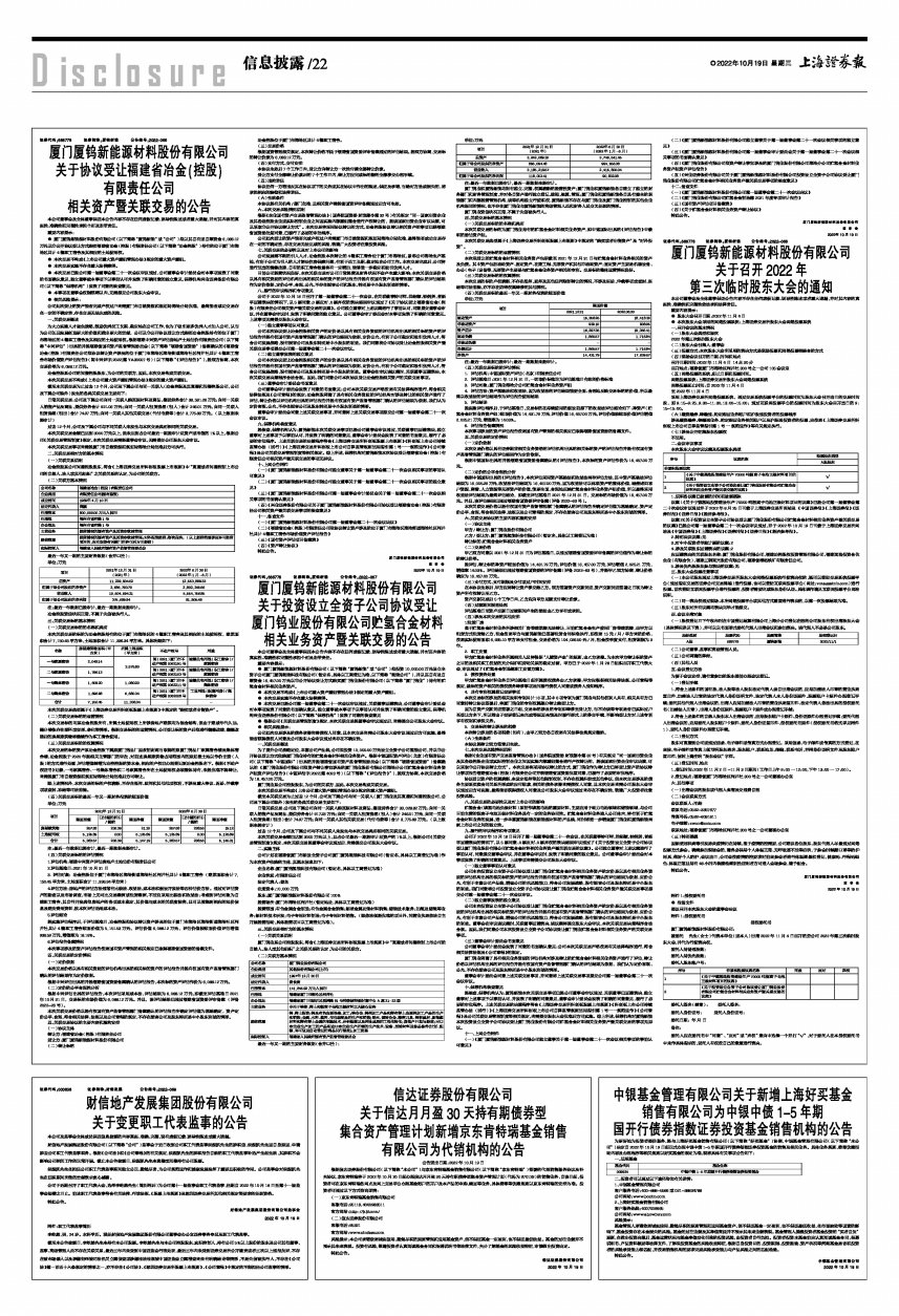 证券代码:688778 证券简称:厦钨新能 公告编号:2022-068