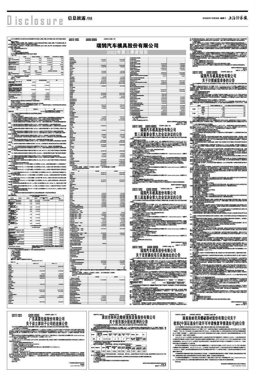 证券代码:002997 证券简称:瑞鹄模具 公告编号:2022-103