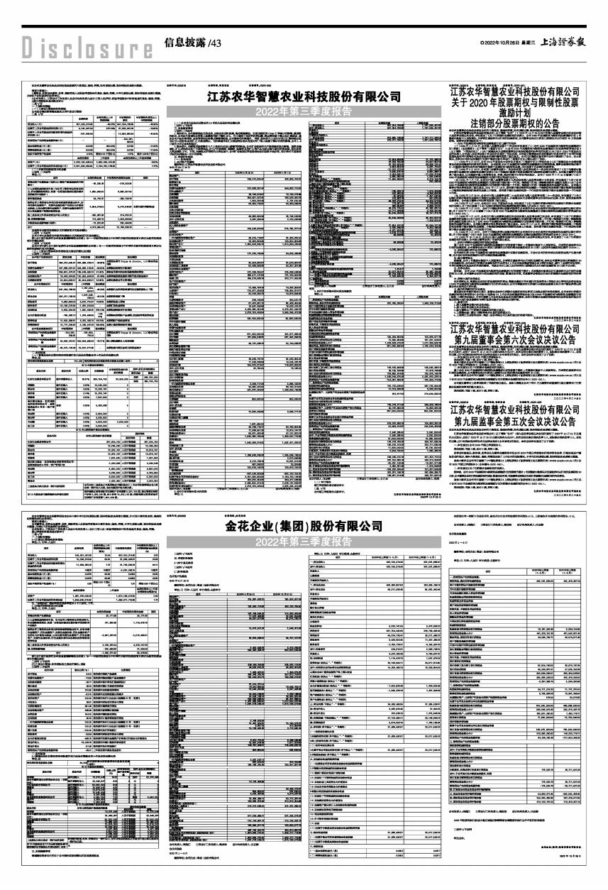 江苏农华智慧农业科技股份有限公司(以下简称“公司”)第九届董事会第六次会议的通知于2022年10月21日以通讯方式发出,会议于2022年10月25日以通讯表决方式召开。本次会议应参加表决董事7人,实际参加表决董事7人。会议的召集、召开和表决程序符合有关法律法规和《公司章程》的规定。本次会议审议通过了以下议案: