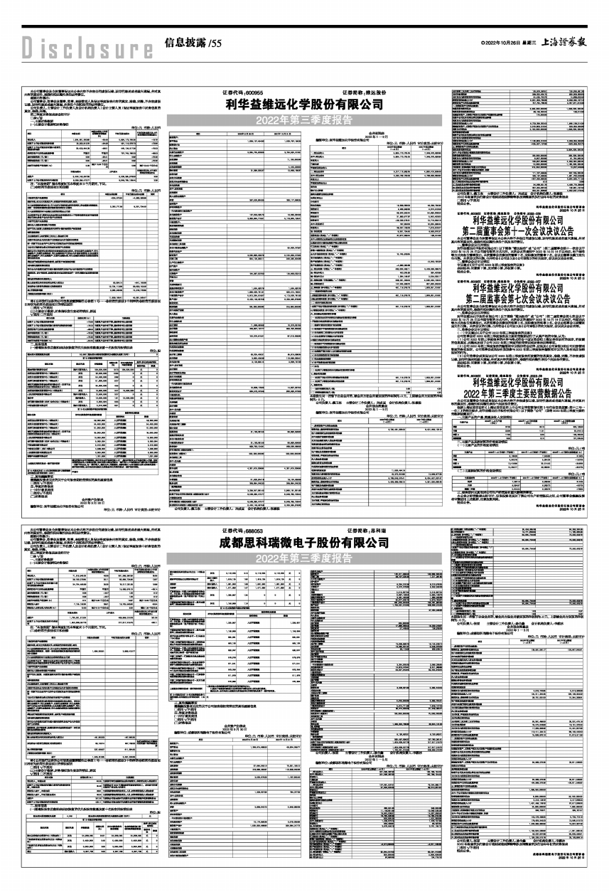 根据上海证券交易所《上海证券交易所上市公司自律监管指引第3号行业信息披露:第十三号一一化工》的相关要求,利华益维远化学股份有限公司(以下简称“公司”)现将2022年第三季度主要经营数据披露如下: